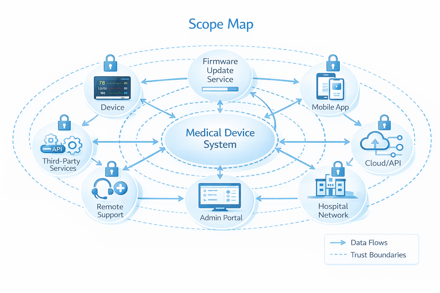 A common reason FDA related pentests fall short is scope mismatch. Medical devices are rarely “just the device” they’re ecosystems.