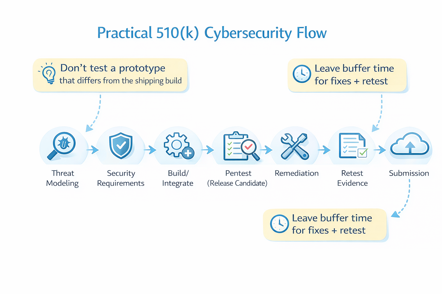 FDA 510(k) is a common path to market, and for connected devices and software-enabled products, cybersecurity evidence is frequently part of demonstrating the device is appropriate for its intended use and environment.